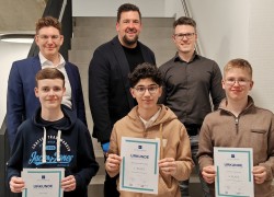 Gummersbach - Noah David Nasimzadah vom Homburgischen Gymnasium Nümbrecht hat den Wettbewerb „Wirtschaftswissen im Wettbewerb“ im Oberbergischen Kreis gewonnen. Den zweiten Platz erreichte Leonel Dick von der Städtischen Realschule Bergneustadt, gefolgt von Christoph Schönbach, ebenfalls von der Städtischen Realschule Bergneustadt, auf dem dritten Platz. Rund 700 Schülerinnen und Schüler der 9. und 10. Klassen allgemeinbildender Schulen im Oberbergischen Kreis nahmen an dem Wirtschaftsquiz teil ... mehr